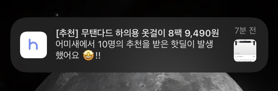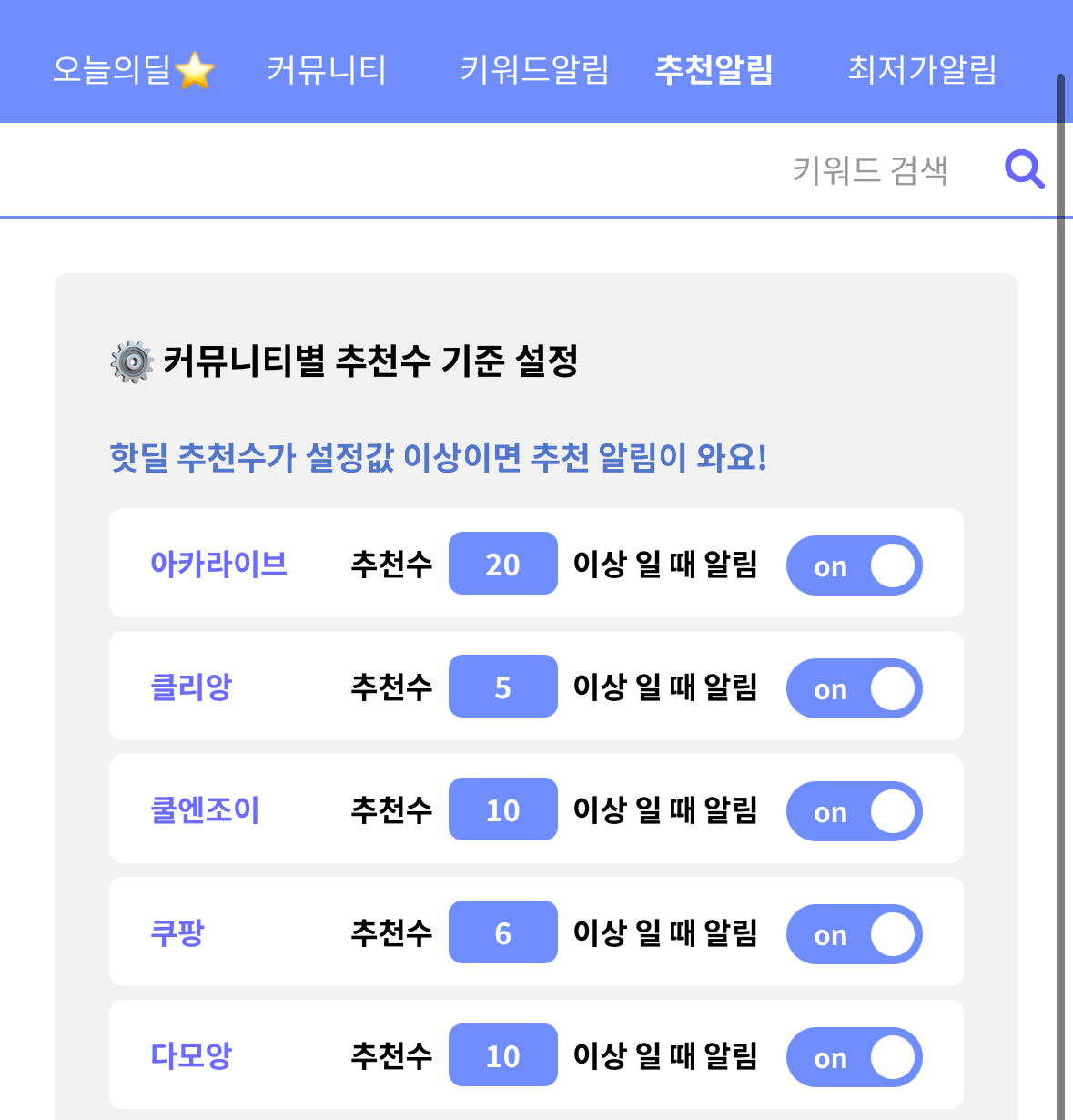 추천수/댓글수/봤어요가 많은 핫딜알림을 받으면 어떨까요?